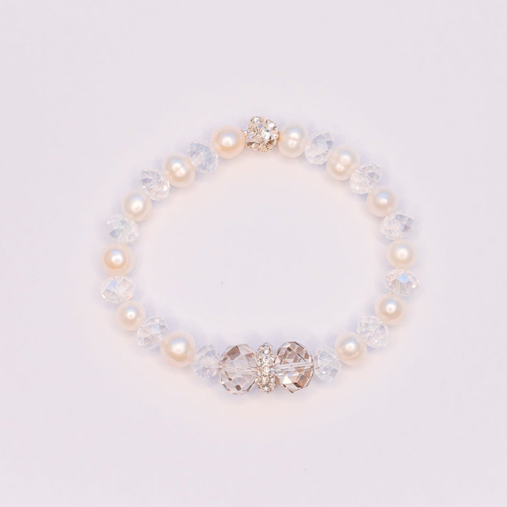 Material: perle de cultură 8mm, cristale swarowski 10-12mm, elastic, aliaje usoare (zinc, alamă, otel)