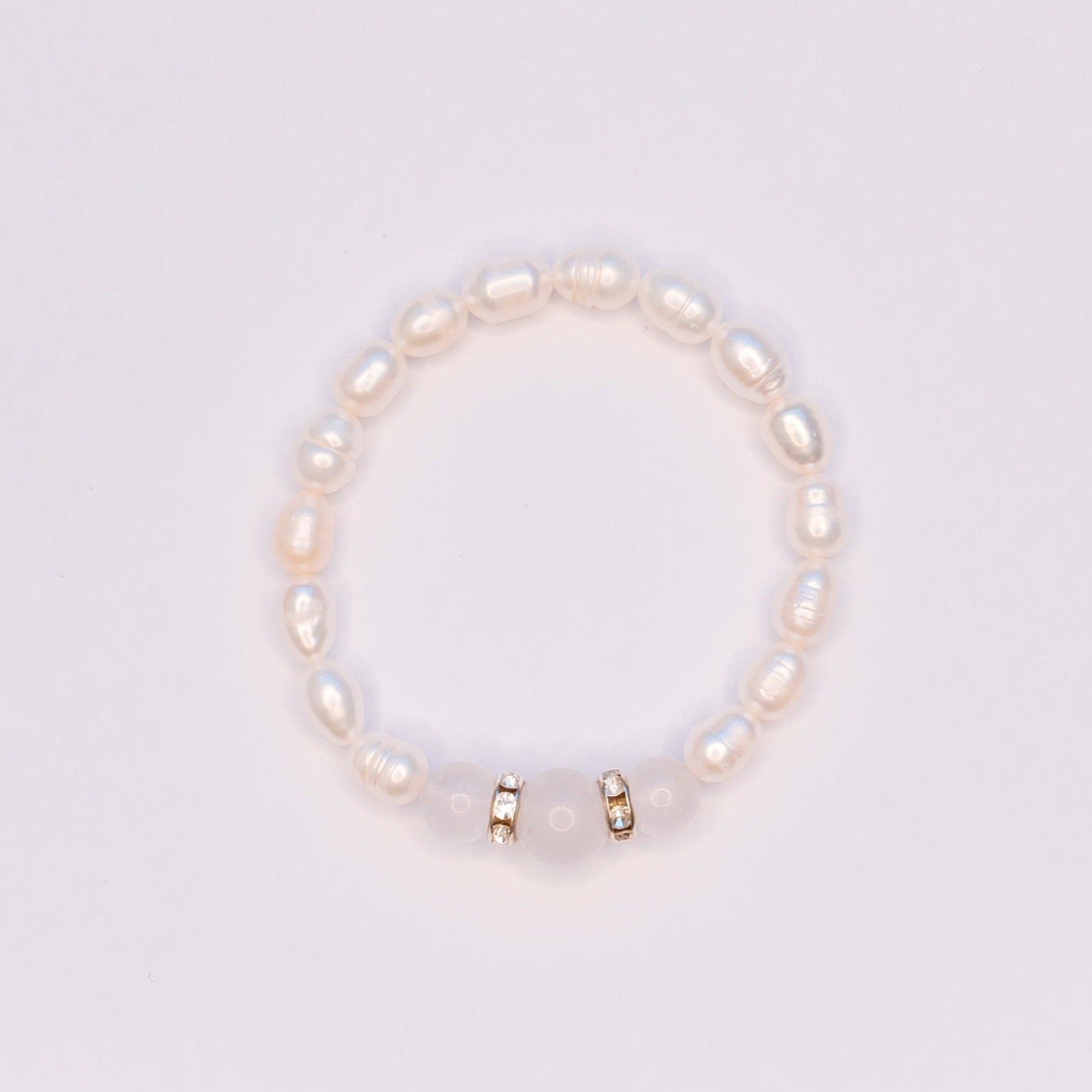 Material: pietre semi-pretioase 7-8mm, perle de cultură 5-6mm elastic, aliaje usoare (zinc, alamă, otel)