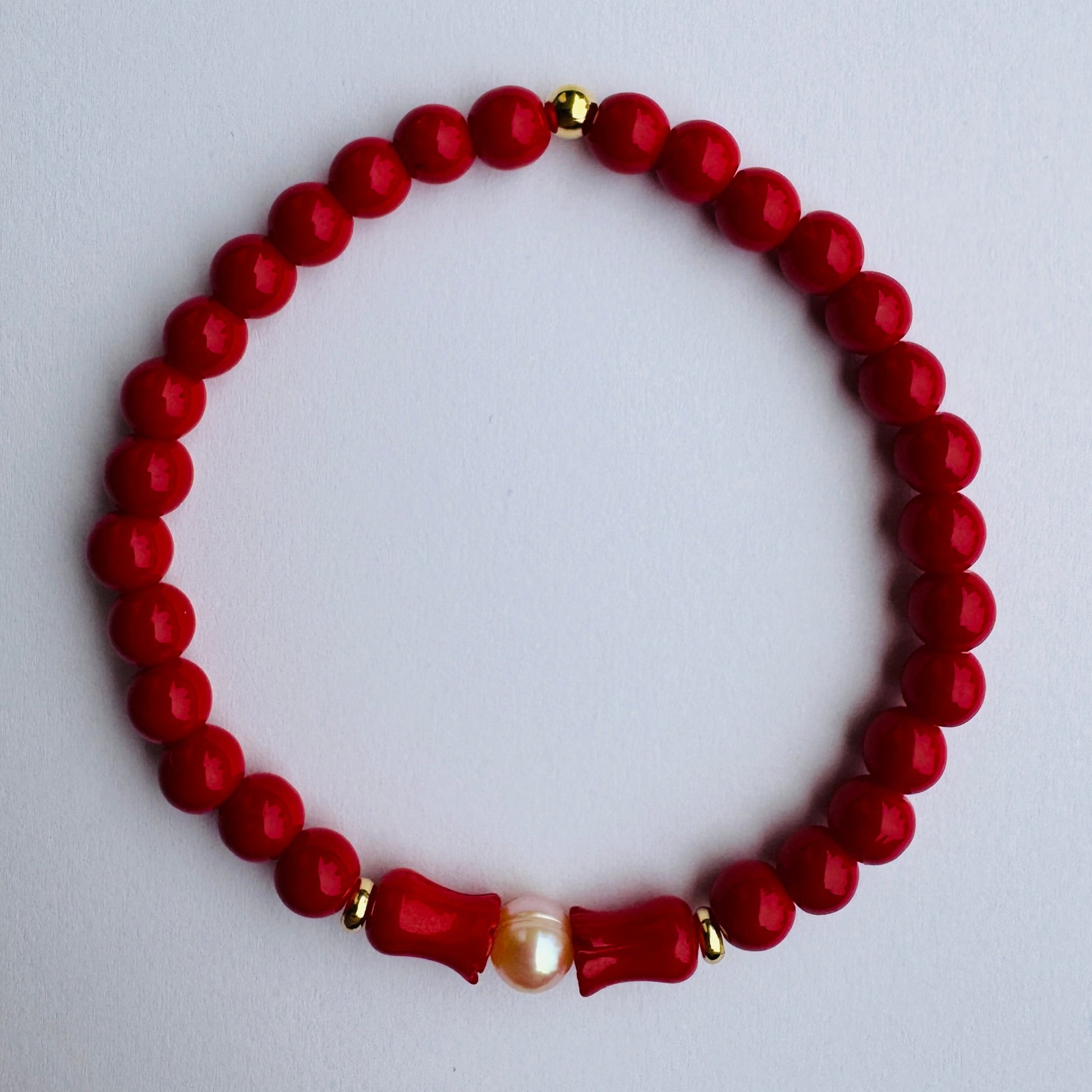 Această brățară unică este realizată manual cu perla de cultură, coral și . Combinarea acestor elemente creează o bijuterie sofisticată și rafinată, cu o textură interesantă și o paletă de culori deosebite. Această brățară lucrată manual este o alegere excelentă pentru femeile care caută o bijuterie unică și elegantă, care să completeze cu stil ținutele preferate.