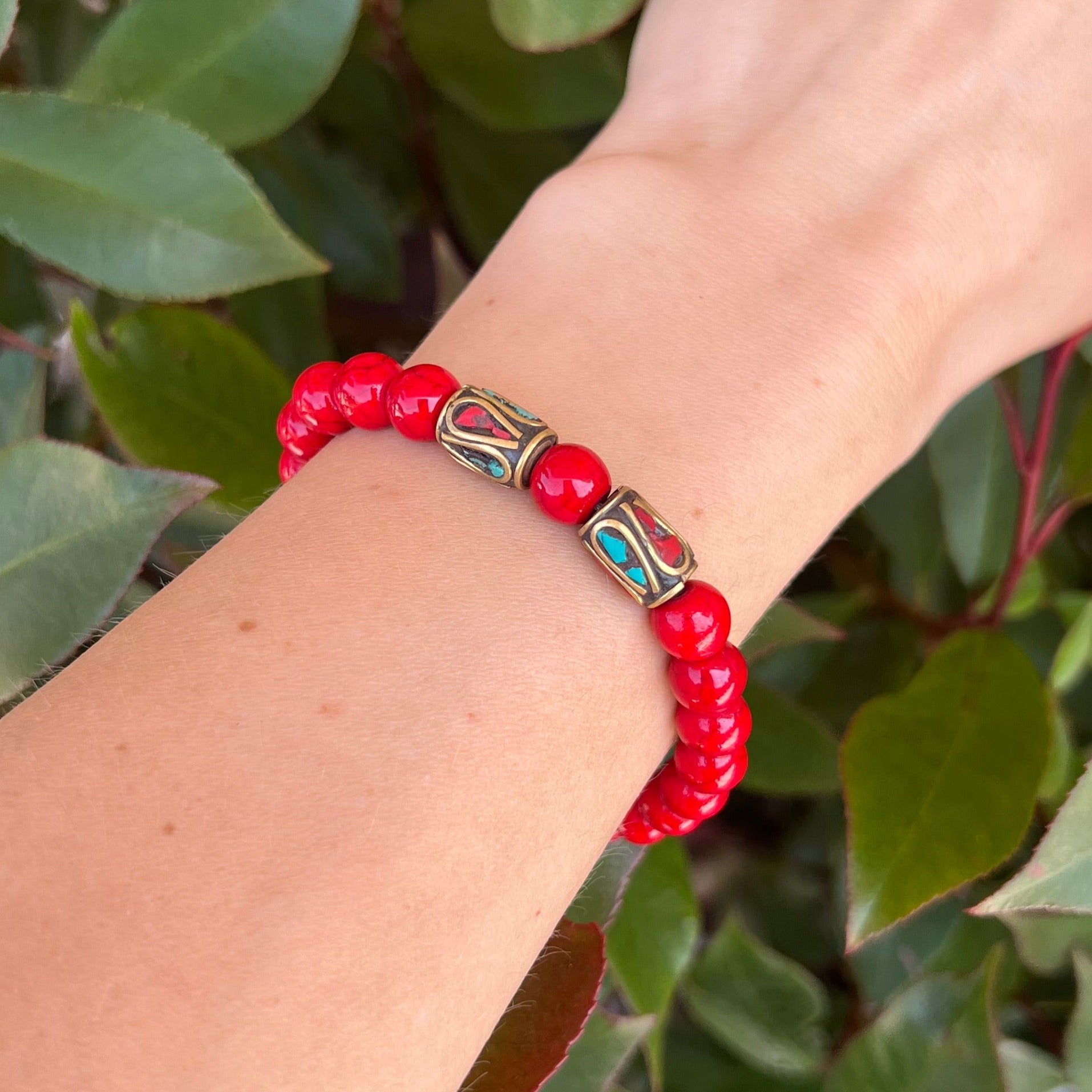 Această brățară unică este realizată manual cu pietre de coral rosu și margele nepal. Combinarea acestor elemente creează o bijuterie sofisticată și rafinată, cu o textură interesantă și o paletă de culori deosebite. Această brățară lucrată manual este o alegere excelentă pentru femeile care caută o bijuterie unică și elegantă, care să completeze cu stil ținutele lor preferate.