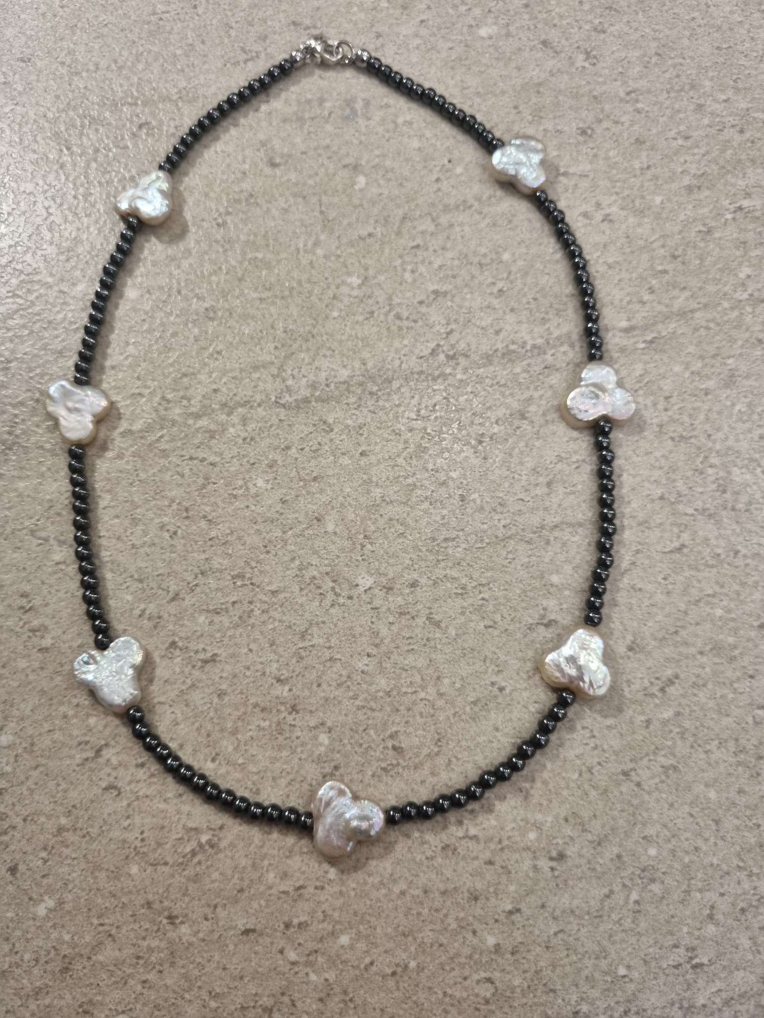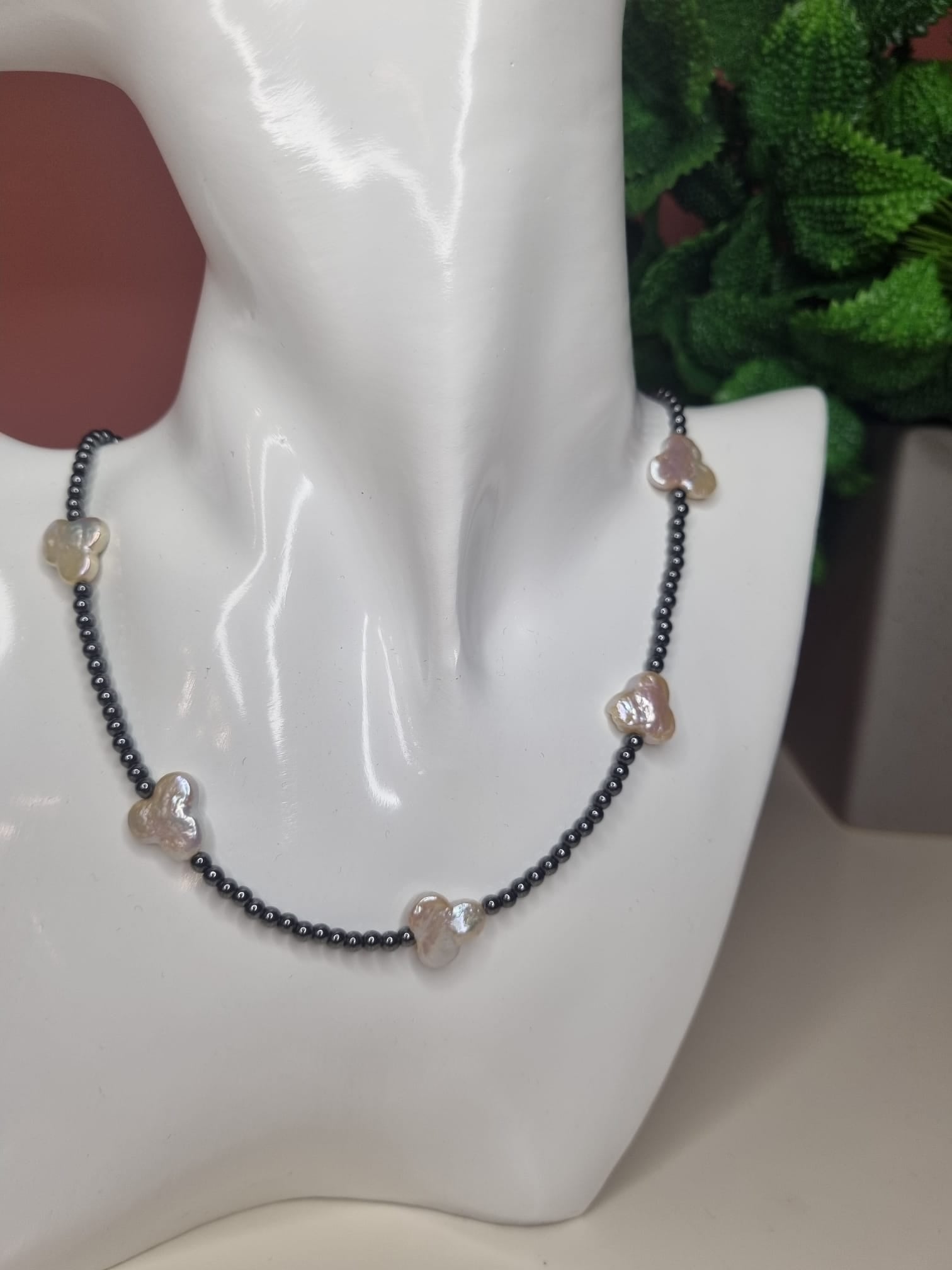 Material: Hematit 3mm ,perle 10-12mm, aliaje usoare (placate cu metale pretioase)